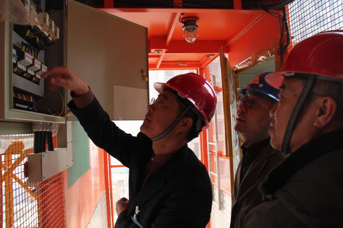 評審專家對施工電梯檢測進行現(xiàn)場評審