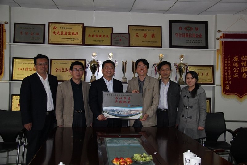 4月20日上午,中山水務陳宇暢副總經理一行來到山東齊魯城市建設管理有限公司,代表濟寧中山公用水務有限公司向我公司贈送了寫著 “盡心盡責,嚴格把關”的牌匾,以表彰我公司監理項目部人員在濟寧市污水處理廠升級改造暨中水回用工程監理工作中的優秀表現。