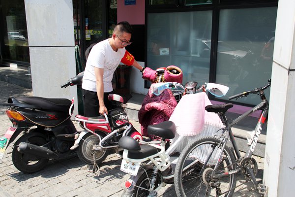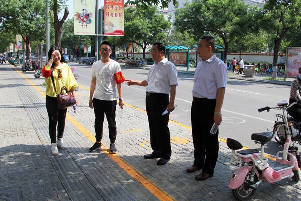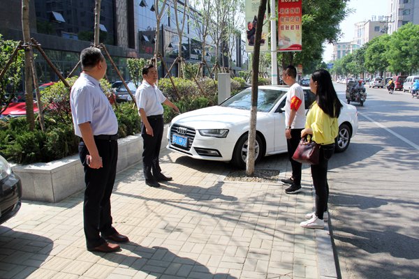 我公司自5月8日起安排科苑路自洸河路至金宇路路段執勤工作,每天安排兩名值班人員對路段進行巡視督查,執勤人員嚴格按照上崗時間到達指定地點。巡視、記錄內容主要有:包保路段是否有集中宣傳展示精神文明創建內容的宣傳欄;沿街商鋪是否用電子顯示屏展示社會主義核心價值觀;機動車、非機動車是否逆行、占用人行道行駛;非機動車是否占用公共道路、盲道等現象;沿街商鋪是否出現亂潑污水、亂扔垃圾、超門頭經營行為;主動將亂停亂放的電動車、自行車整齊擺放到規定停車區內。烈日炎炎、驕陽似火,火毒的太陽炙烤著執勤人員的身影,盡管如此高溫的天氣,我們的工作人員依舊停不下巡視的腳步,他們在千米的路段來回穿梭,認真記錄、上傳檢查中出現的問題,耐心與商鋪店主進行溝通,與車主協調。
