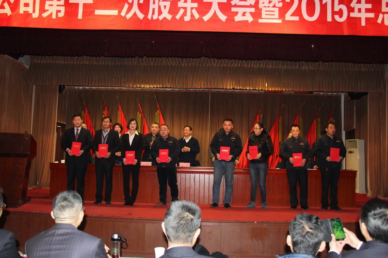 會上,王總代表公司董事會作了年終報告,監(jiān)事會羅望瑜匯報了監(jiān)事會工作開展情況,杜紹坤副總經(jīng)理就2015年財務決算及利潤分配情況作了分析,宋德望副總經(jīng)理宣讀了關于評選2015年度先進總監(jiān)及先進工作者的決定,盧潔秀副總經(jīng)理宣讀了公司獲獎工程名單并傳達了濟寧市住建局2016年工作重點安排。大會同時為2015年度先進工作者頒獎,何建忠、鐘玉文代表先進工作者作了典型發(fā)言。