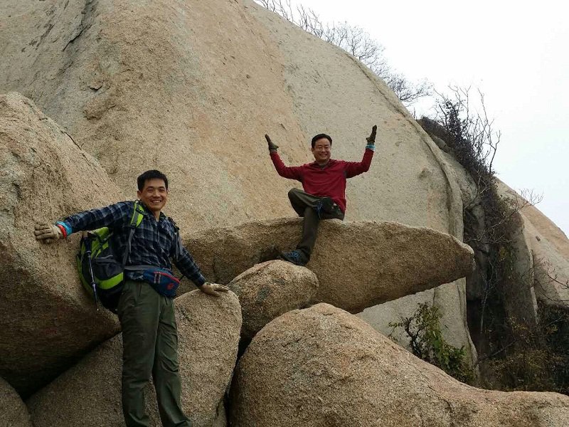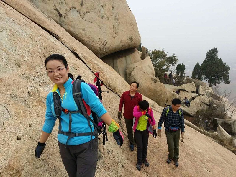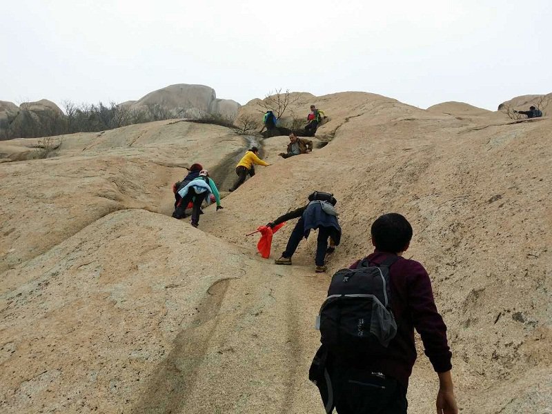 清晨,齊魯管理公司登山隊一行四十余人在王華董事長的帶領下來到鄒城牙山腳下,即將挑戰這座由巨石構筑的大山,這也是齊魯管理公司打造高品質生活戶外活動的第四站。清晨的牙山霧靄茫茫,從山腳往上看,整個山體皆是巨石組成,山上鮮有樹木,一眼望去盡是險峻。隊員們個個摩拳擦掌,迫不及待要去征服它。但是,盡管山上都是巨石,攀登起來卻讓人無從下腳,沒走多遠,前方一塊巨大山巖擋在眾人面前。在確認并無其他道路可走的情況下,那山巖高且陡的石面就成了大家的必經之路。隊員們倒吸一口冷氣,那石面的角度足有七八十度,且并沒有太多地方可供下腳,攀登難度堪比攀巖專業選手級別。但是大家毫不氣餒,整理好自己的裝備,和隊友搭人梯、手拉手,老隊員帶新隊員,互相幫助一路向上。一時間,巨大的石面上足有七八個隊員在攀爬。不一會,所有隊員都攀登上來,踩在了這塊巨石之上,眾人向下望去,無不感慨自己完成了幾乎不可能完成的任務。來到山頂,在享受征服大山的快樂的同時隊員們紛紛合影留念,大家表示通過這幾次的登山活動不僅增強了體質,自信心也有了很大的提高,工作時更有了干勁,希望公司能把這項活動更好的推廣下去。