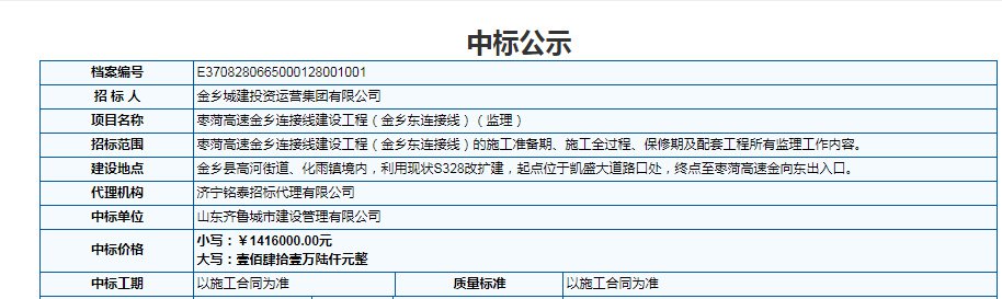 祝賀我公司棗菏高速金鄉連接線建設工程(金鄉東連接線)(監理)中標