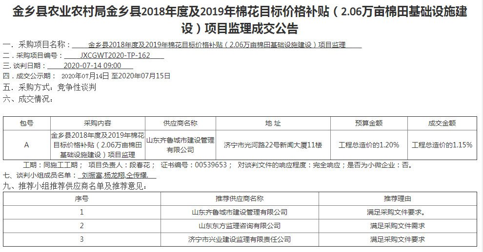 祝賀我公司金鄉縣農業農村局金鄉縣2018年度及2019年棉花目標價格補貼(2.06萬畝棉田基礎設施建